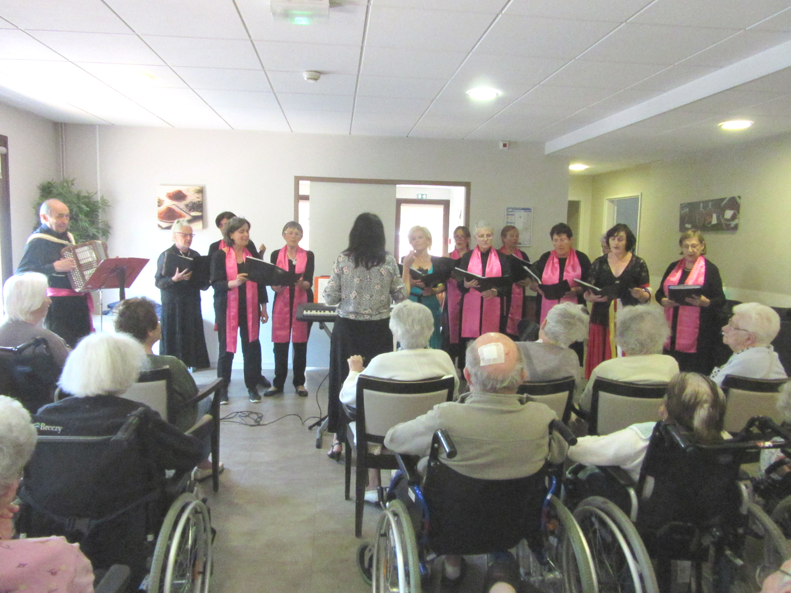 Le vendredi 7 Juin, nous avons reçu le groupe « Arpège Fleury ». Les résidents ont pu apprécier le spectacle composé de chants et de danses pendant plus d’une heure.
