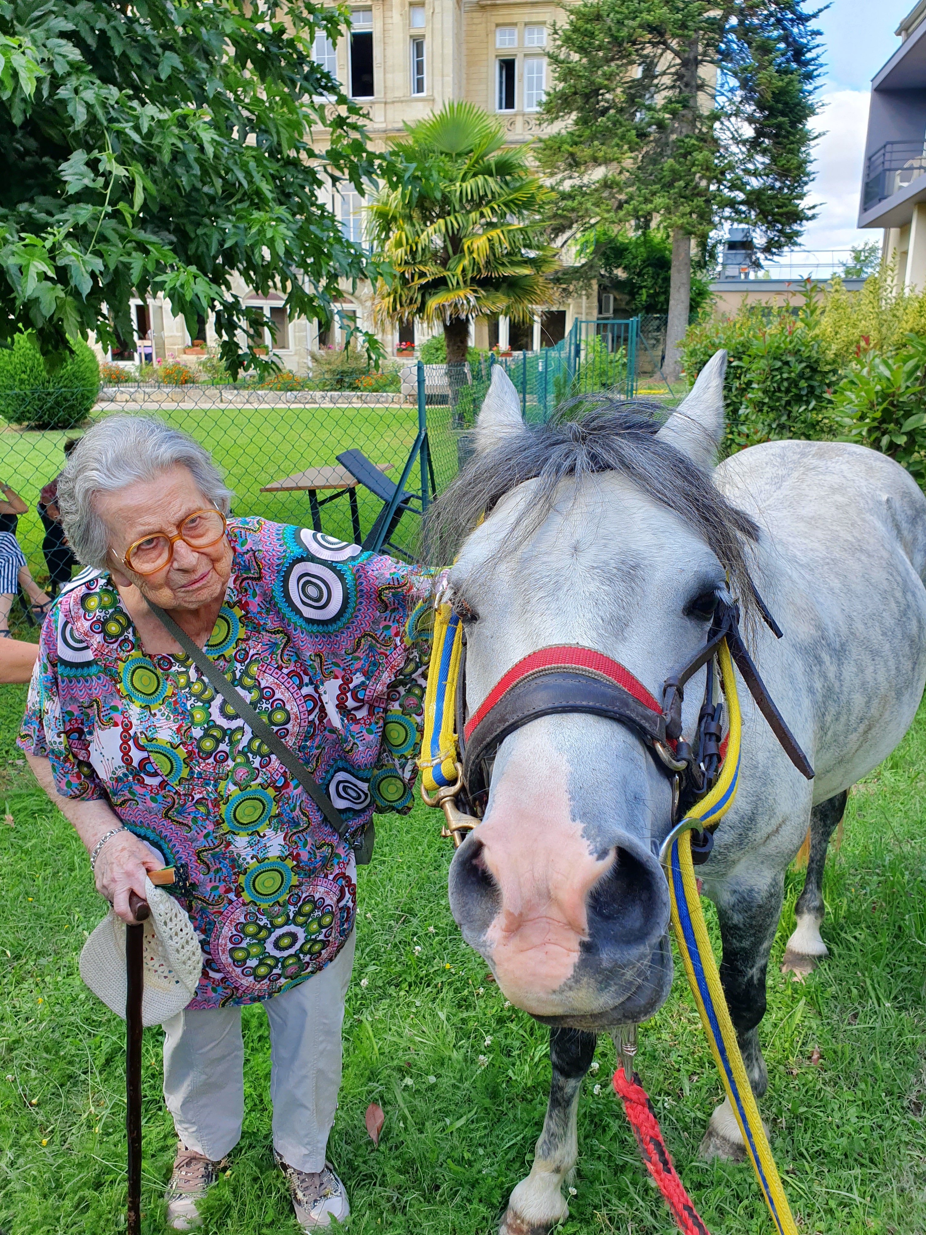 Un moment émouvant, où l’étonnement s’est mêlé au rire, entouré des soignants, qui ont accompagné les résidents les plus impressionnés au-devant de cette belle monture.